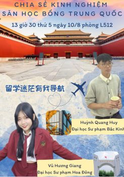 Nhằm nuôi dưỡng niềm yêu thích thích tiếng Trung và chấp cánh giấc mơ du học Trung Quốc, ngày 10/08/2023 vừa qua, ngành Ngôn ngữ Trung Quốc thuộc khoa Ngoại Ngữ – Trường Đại học Nguyễn Tất Thành đã tổ chức chương trình “Chia sẻ kinh nghiệm săn học bổng Trung Quốc” dành cho các bạn sinh viên đang theo học khối ngành này tại Trường.