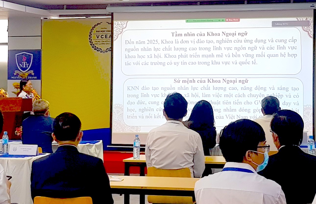 Đón tiếp và làm việc với Đoàn ĐGN, về phía Trường Đại học Nguyễn Tất Thành và Khoa Ngoại ngữ có: TS. Trần Ái Cầm, Hiệu trưởng Nhà trường; ThS. Nguyễn Hữu Đăng Quang, Phó Trưởng phòng Đảm bảo chất lượng; TS. Nguyễn Thị Nguyệt Ánh, Phó Trưởng khoa thường trực, Khoa Ngoại ngữ; ThS. Phạm Bá Văn Quân, Phó Trưởng khoa Ngoại ngữ; ThS. Hoàng Quỳnh Anh, Quyền Trưởng bộ môn Ngôn ngữ Trung Quốc; Ban thư ký cùng đội ngũ giảng viên – cán bộ đầu mối phục vụ đánh giá chất lượng đào tạo của Nhà trường.